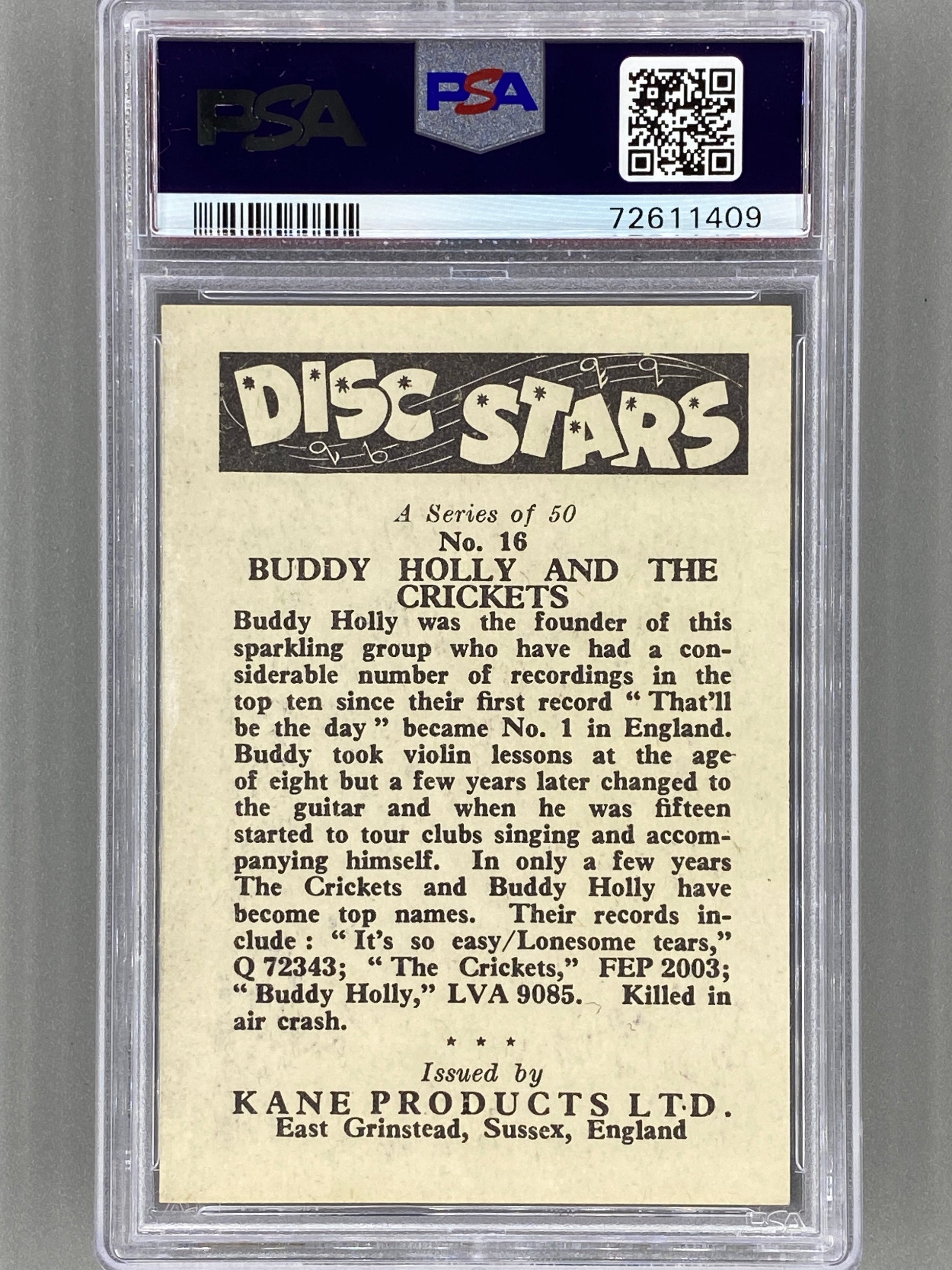 1960 Kane Products Ltd #16 Buddy Holly / Crickets Disc Stars PSA 6 Pop 1 - 9 Higher