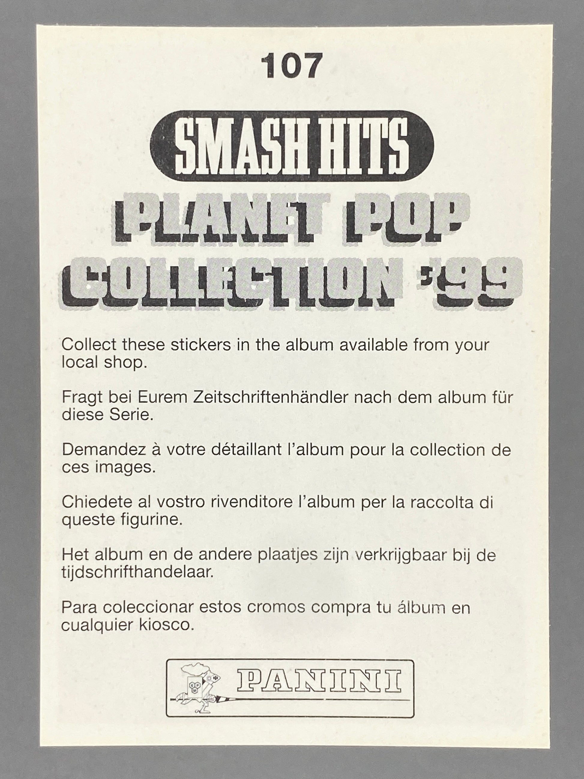 1999 Panini Smash Hits Planet Pop Collection '99 Sticker