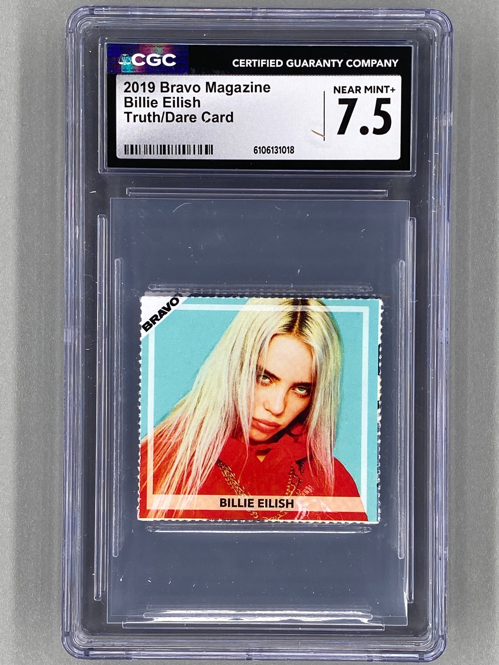 About This Card: This card is the earliest known card of Billie Eilish. This card was manufactured as part of a perforated card insert and was an extra in an issue of Bravo Magazine. The cards were intended to be hand separated from that insert. Bravo card autographs are facsimile autographs and are not hand signed.